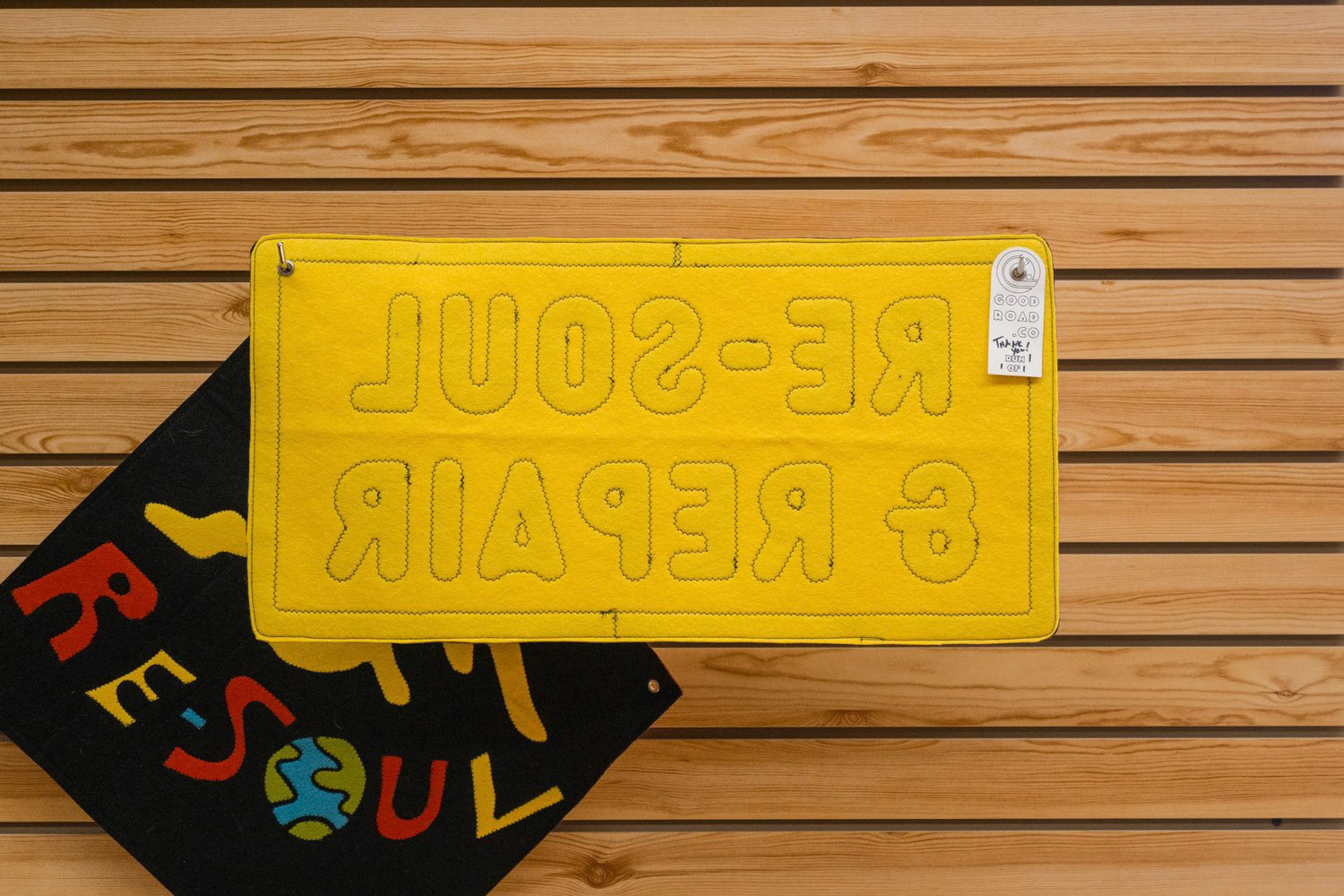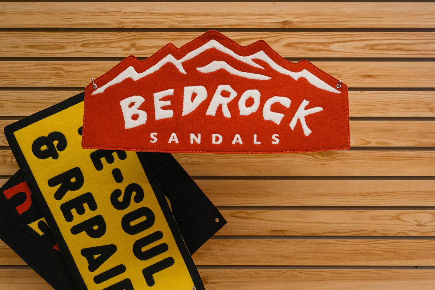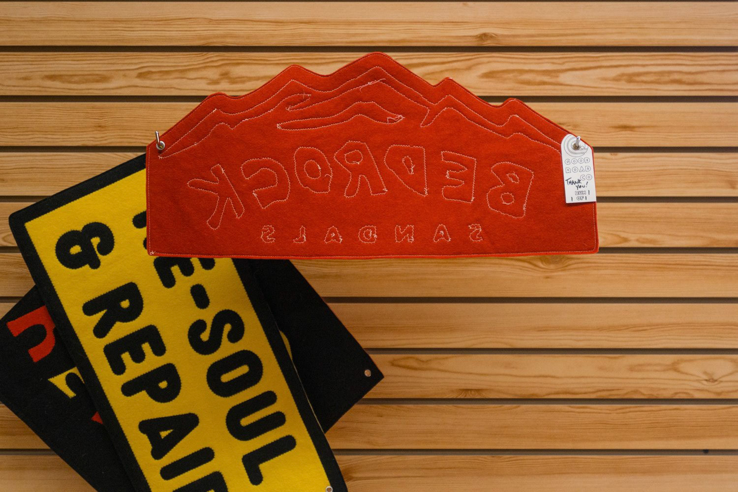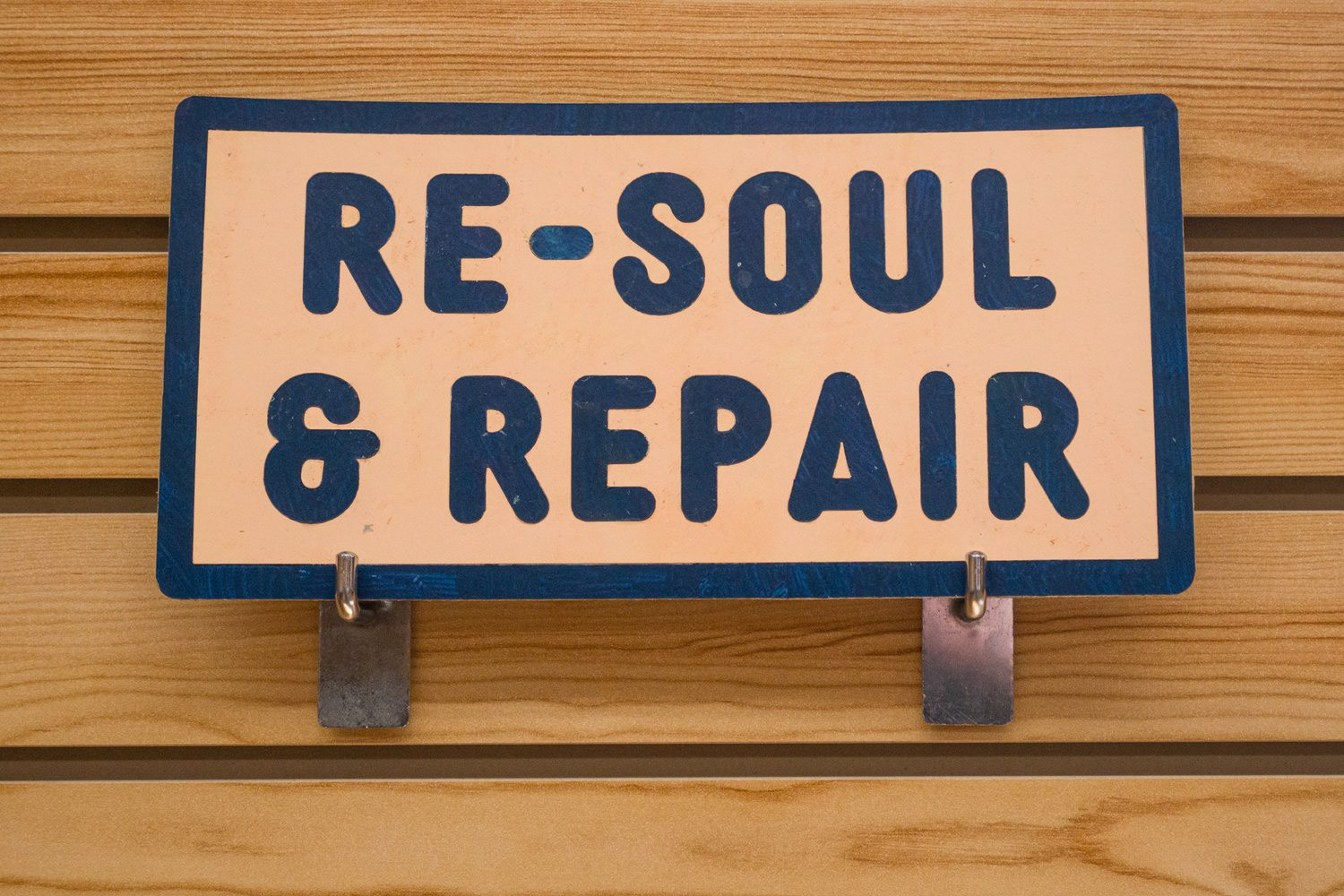 -Make the "Re-Soul" pennant a large version of the tag that's applied to repaired sandals when they're returned to clients.