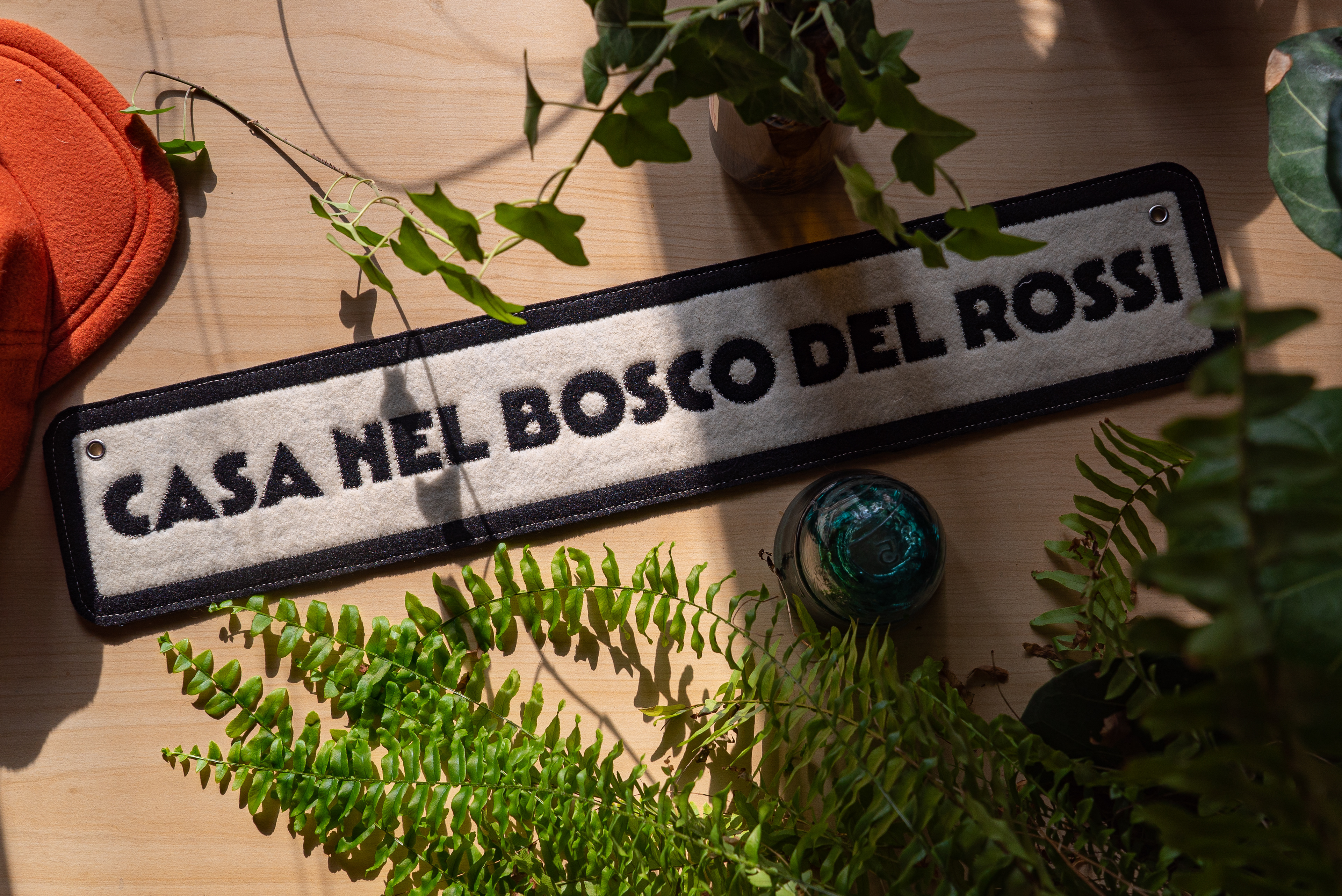 -For decades the Rossi family had a beautiful cabin in the Berkshires. At the edge of their driveway was a sign that read "CASA NEL BOSCO DEL ROSSI." After the passing of their matriarch they had to sell the home and requested a pennant for the living family members to commemorate their sanctuary.